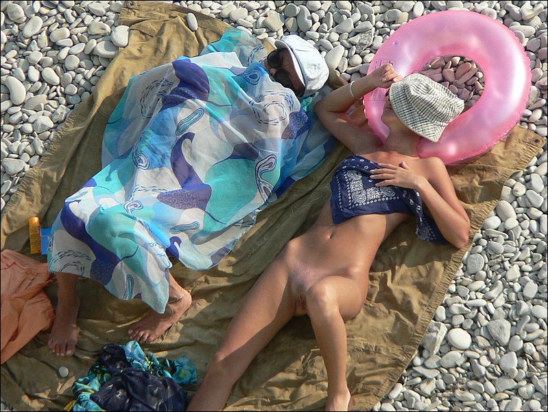 Two beach girls get totally nude for voyeur pleasure