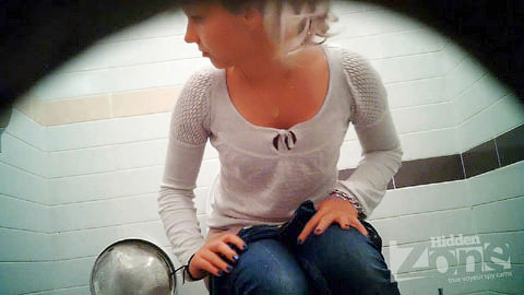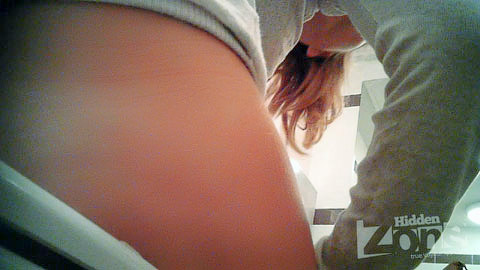View from the two cameras. Beautiful blonde demonstrate to our operator hair on her pussy and beautiful round ass with lines from the sun. Successful voyeur video of the toilet.
